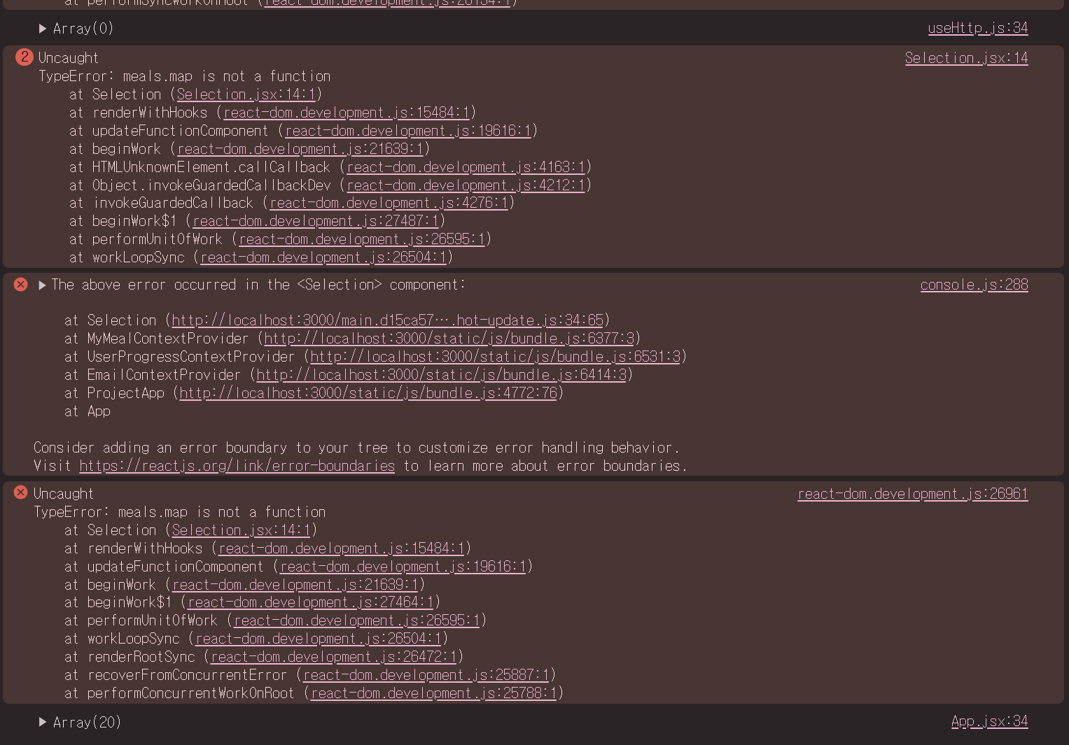그 과정에서 useEffetc를 통해 에러핸들링을 순차적으로 만들어보면서 에러가 나는 부분을 해결하고자 한다.