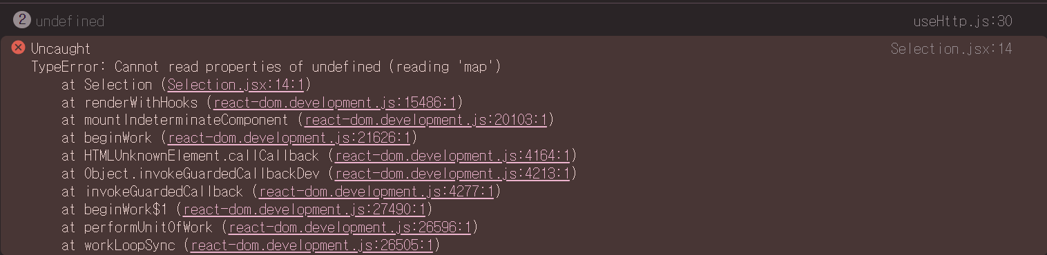 여전히 map의 배열이 undefined라는 것을 보아 data가 안 받아진 것을 볼 수 있다.