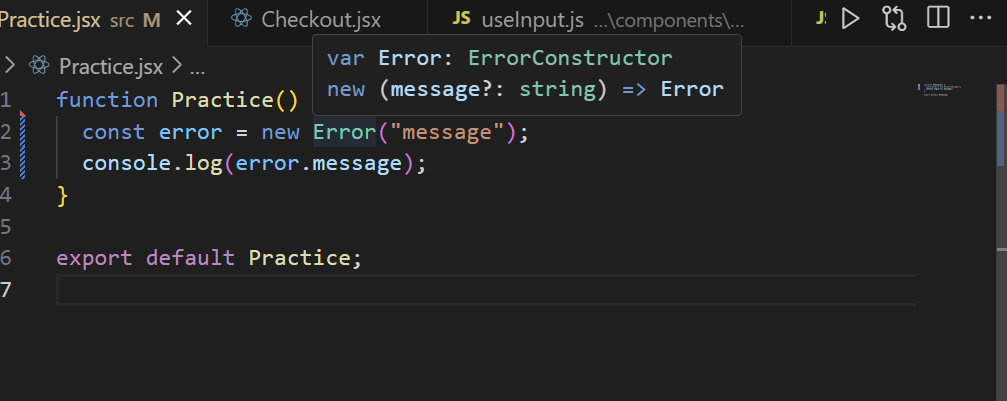 Error객체 위에 가져다보면 객체구조가 보이는데 message를 객체로 가진 것을 볼 수 있다.