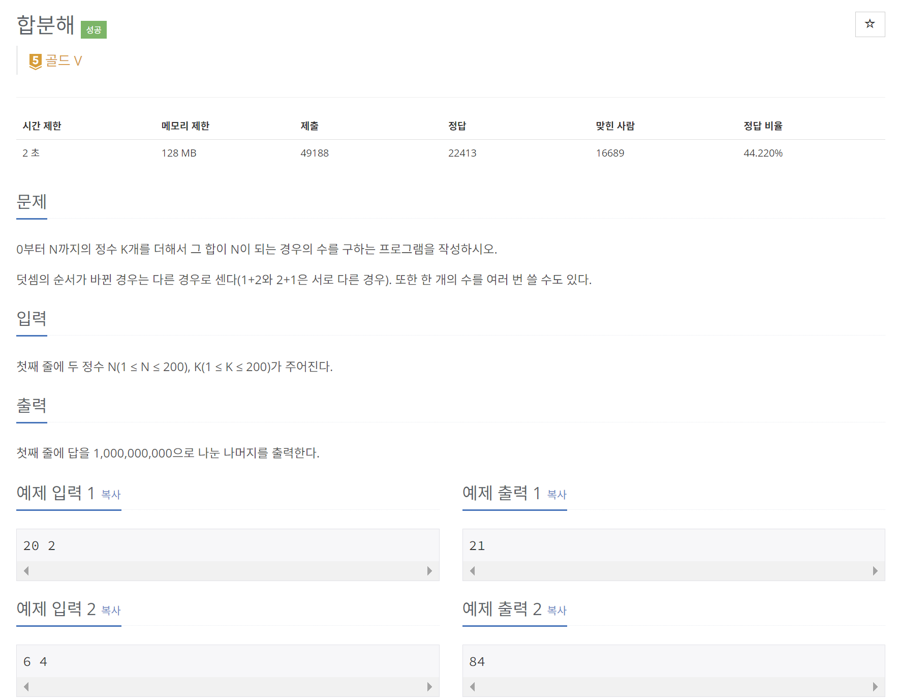 dp[i][j] = (dp[i][j - 1] + dp[i - 1][j]) % 1000000000;
