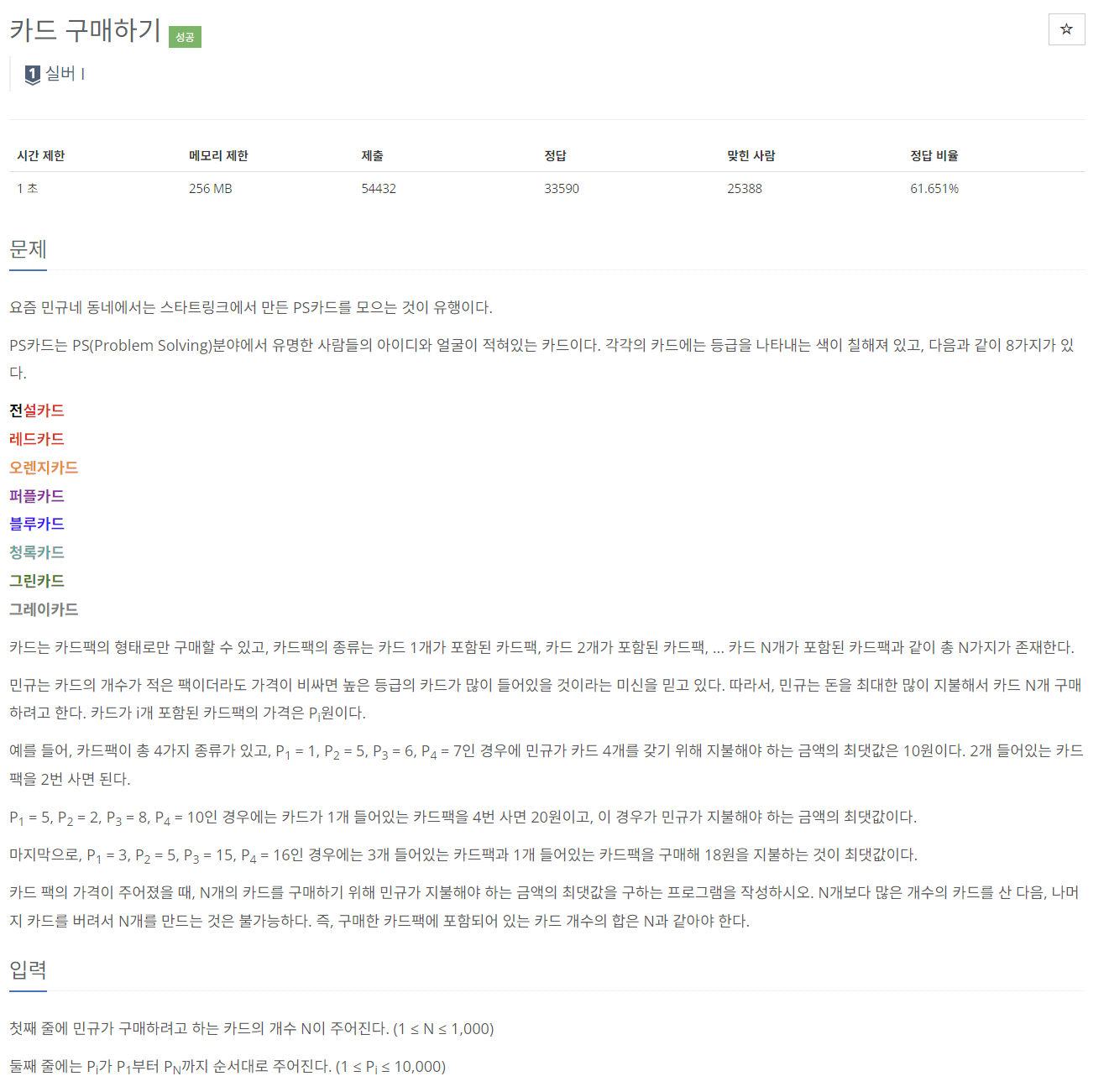 https://www.acmicpc.net/problem/11052