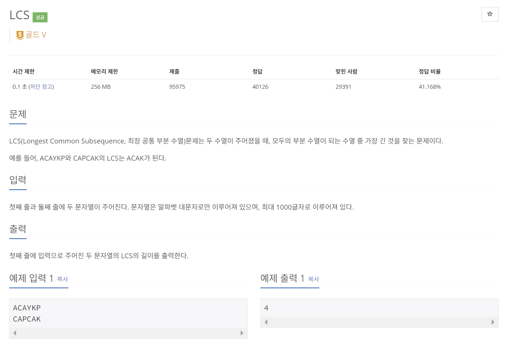 LCS는 주로 최장 공통 부분수열(Longest Common Subsequence)을 말합니다만, 최장 공통 문자열(Longest Common Substring)을 말하기도 합니다.