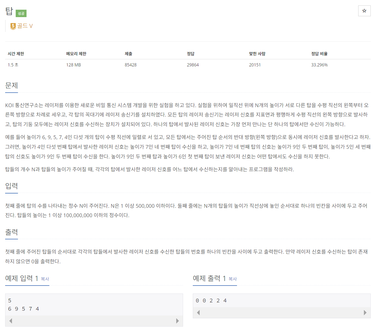 https://www.acmicpc.net/problem/2493