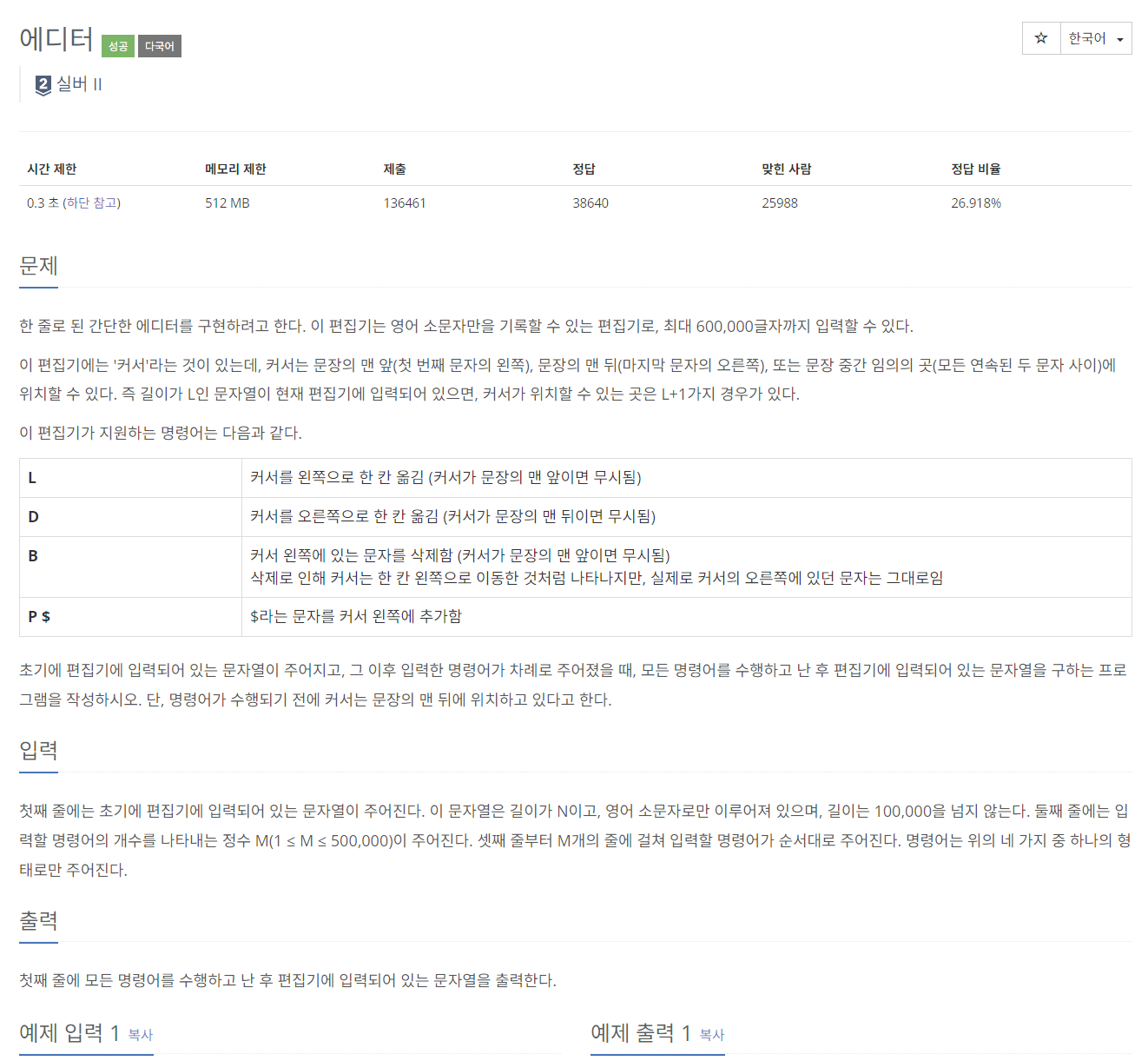 커서를 기준으로 왼쪽 스택, 오른쪽 스택이 있다고 생각하면 쉽게 풀린다. (이걸 떠올리는게 어렵다..)