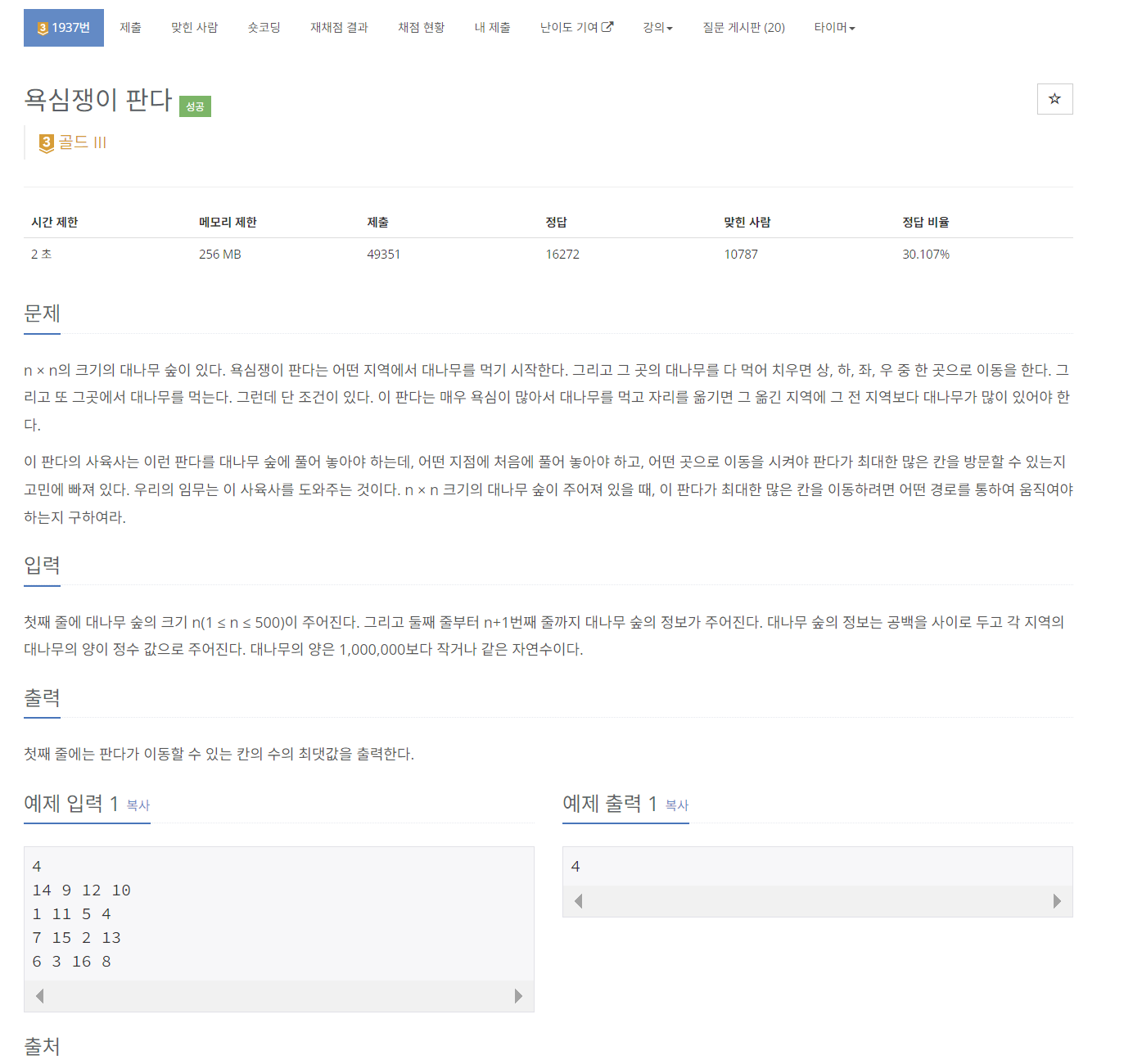dfs bfs로 풀면 유다희.. dp로 풀어야 하는 문제이다.