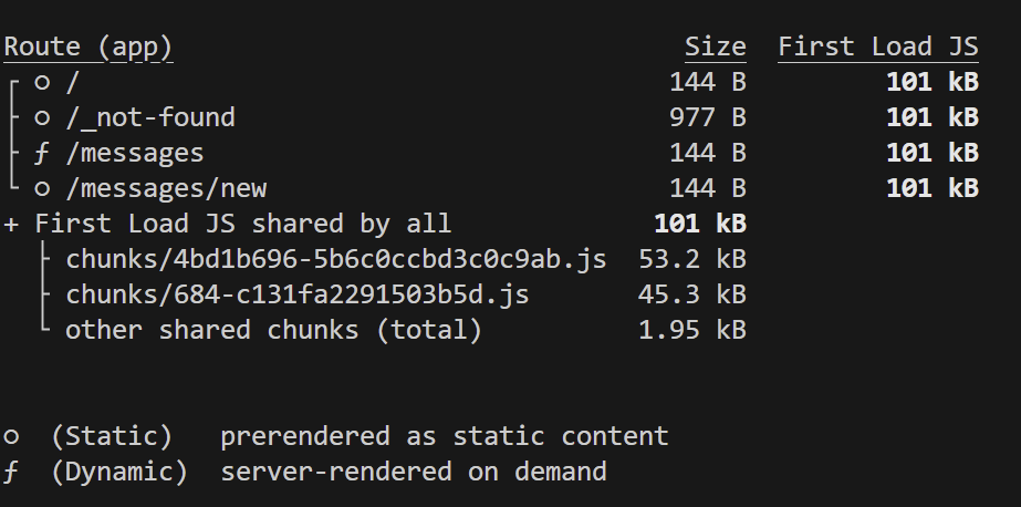 이때 빌드 시에는 동적 페이지를 제외한 페이지들은 미리 생성된 상태로 만들어지게 된다.