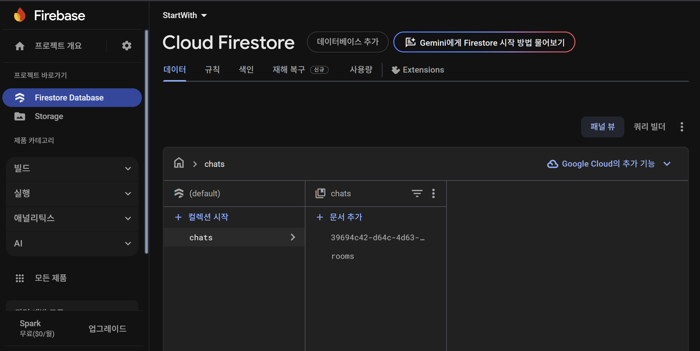 따라서 컬렉션안에서 문서를 만들 수 있습니다. 이때 문서는 직접 추가할 수 있고 형식은 지정해 주지 않아도