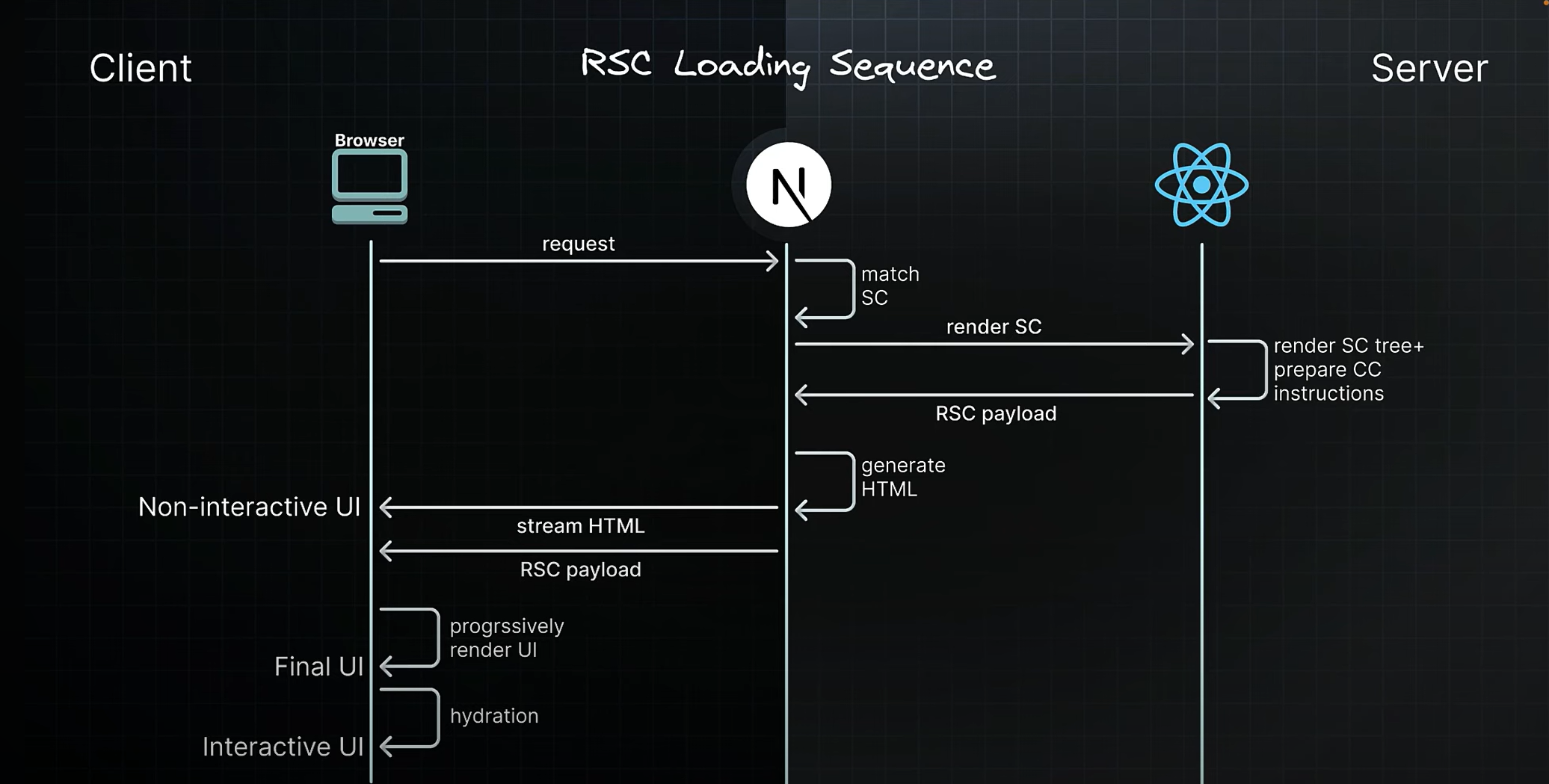 | 2. RSC Payload 생성 | React tree를 이진 청크(RSC payload)로 직렬화 |