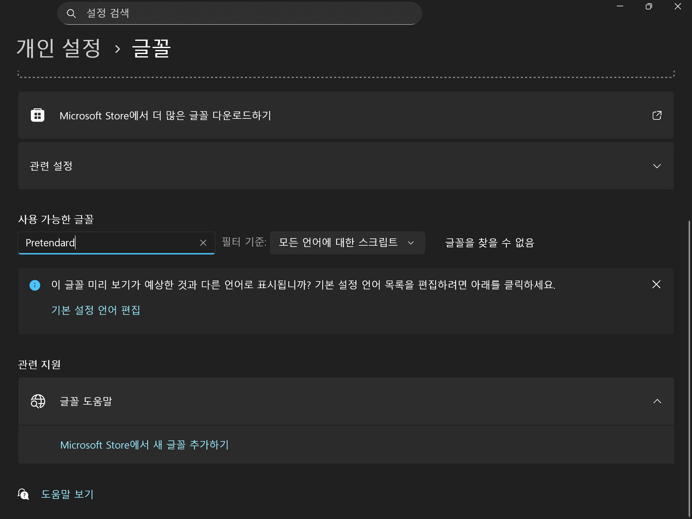 (보통의 경우 웹에서 많이 쓰는 pretendard 같은 폰트의 경우는 os에 기본적으로 깔려있지 않다.