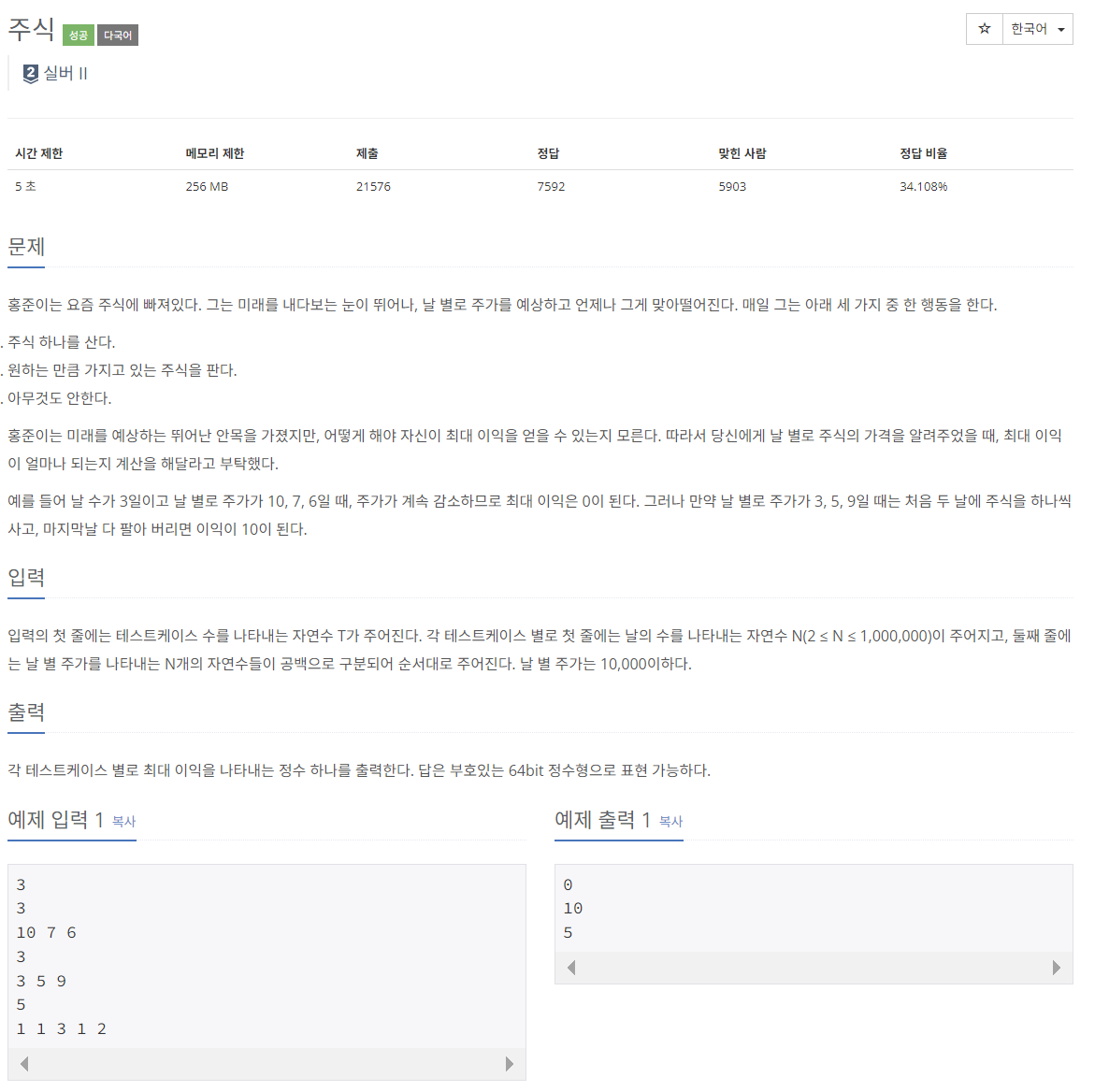 https://www.acmicpc.net/problem/11501